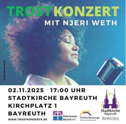 Der Herbst hat Einzug gehalten – die Tage werden kürzer, die Nächte länger. Mit dem schwindenden Licht scheint oft auch die Leichtigkeit des Sommers zu verblassen. In dieser Jahreszeit spüren viele Menschen besonders deutlich, was sie belastet. Es ist Zeit für echten, heilenden Trost – einen, der bleibt, trägt und das Innerste berührt.Am Sonntag, den 2. November, lädt die Stadtkirchengemeinde herzlich ein zu einem Trostkonzert mit Njeri Weth in der Stadtkirche.