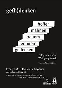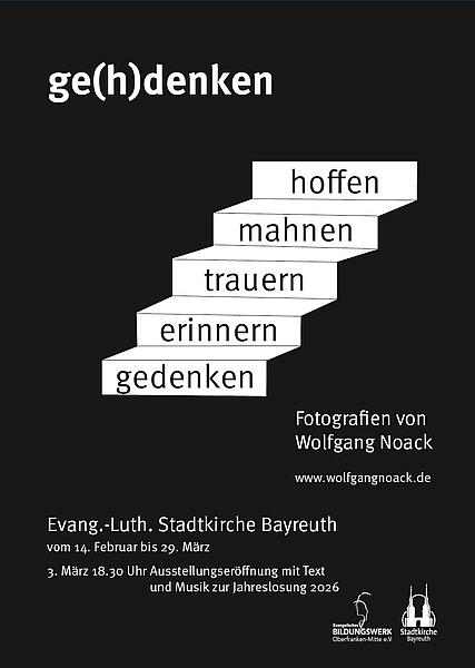 Beim öffentlichen Programmauftakt des Evangelischen Erwachsenenbildungswerks Oberfranken-Mitte am 03.03. um 18:30 Uhr wird der Künstler Wolfgang Noack selbst in die Foto-Ausstellung ‚ge(h)denken. Eine Ausstellung über Gedenken, Erinnern, „Helden“, Trauer und Hoffnung‘ einführen.