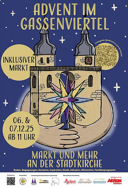 „Es ist eine besondere Ehre, dass wir in diesem Jahr durch die Aktion Mensch gefördert werden. Deshalb legen wir einen besonderen Schwerpunkt auf inklusive Veranstaltungen. Eine Vielzahl von Angeboten mit diesem speziellen Fokus – von der Stillen Stunde über die Matinee des inklusiven Chores Joyful Sound bis hin zum Adventsliedersingen für alle und mehr – zeigt, wie wir Menschen mit Einschränkungen aktiv einbinden und sie zugleich ganz selbstverständlich diese Zeit prägen“, erläutert Volker Sommerfeld, Leiter der Bayreuther Stadtmission.